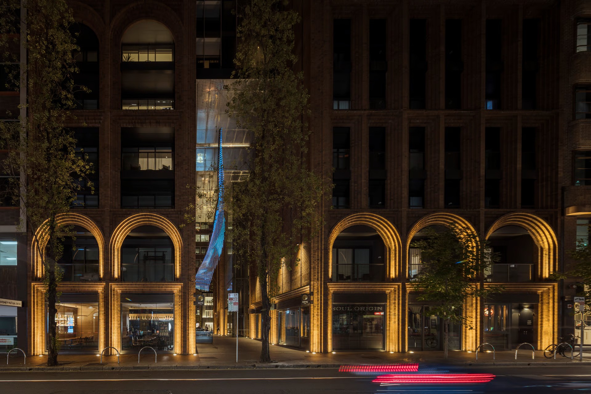 In the heart of Sydney’s CBD sits an architectural award-winning brick masterpiece composed of over 300,000 bricks and spanning the width of an entire block, characterised by its unique sculptured arches. Created for Crown Group, the inspired brick façade pays homage to the historic Sydney buildings, while still exuding a modern inner-city living feel. The delicate detailing of the Bowral bricks used, and the red tones bring warmth to the suburban jungle that is the Sydney CBD. For this project, the lighting design challenge was to enhance that balance between old and new and accentuate the beautiful arches.