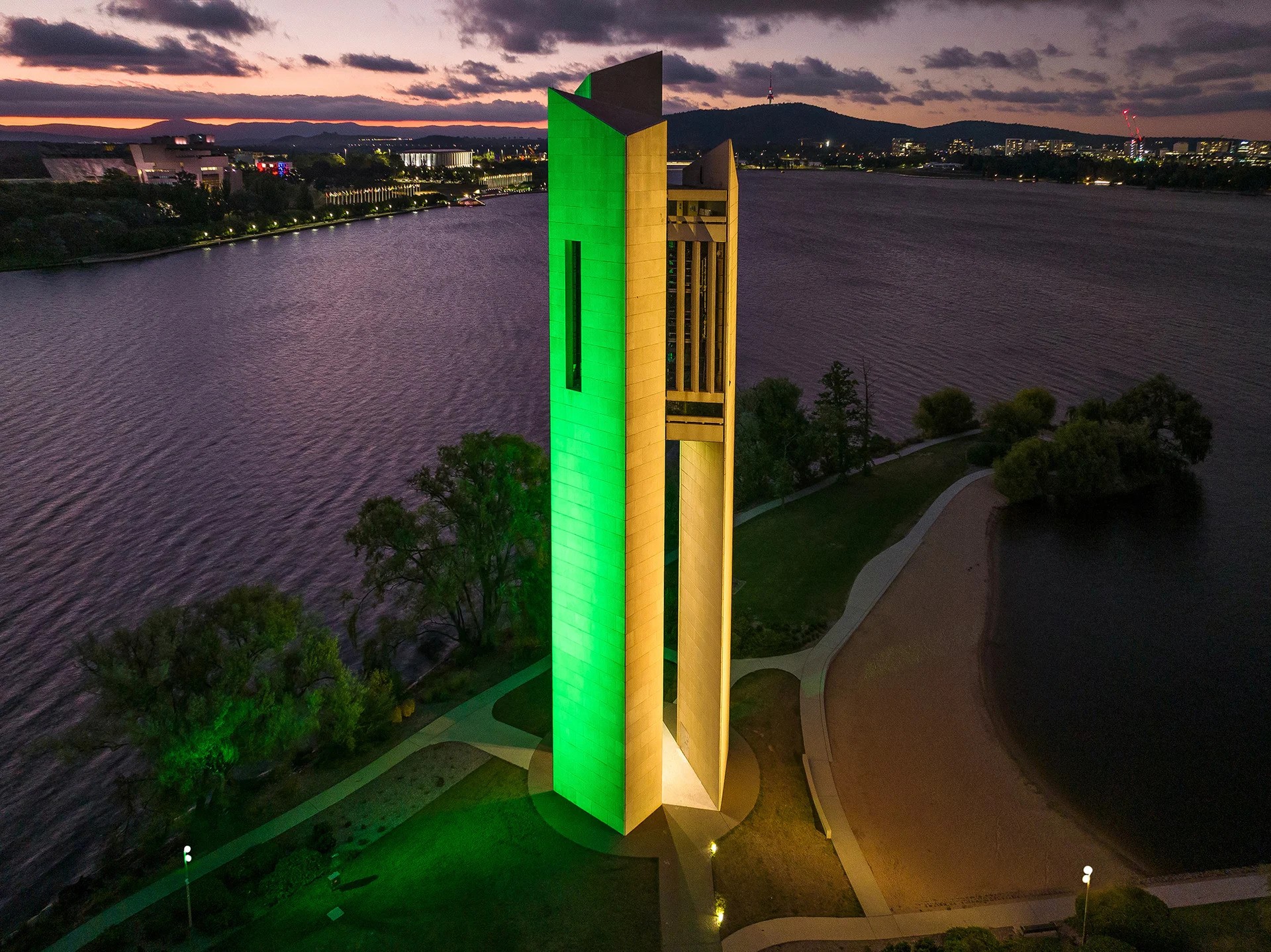 The National Carillon continues to be played on a regular basis during the year by both local and visiting carillonists. It is often used to celebrate national days, mark occasions and is played in conjunction with other events such as Australia Day. On these special occasions, the NCA masterfully curates a combination of the chimes of the carillon’s 57 bells together with changing the colours and scenes of the luminaires to the exterior façade to befit the occasion.