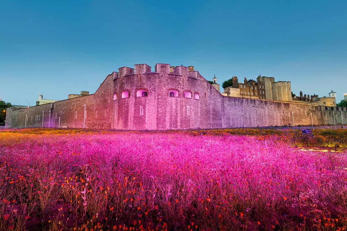The historic moat surrounding the Tower of London was adorned with millions of colourful wildflowers over the summer of 2022, to celebrate the Platinum Jubilee of Her Majesty Queen Elizabeth II. The now even more poignant event – called Superbloom – ran throughout the days and some evenings.