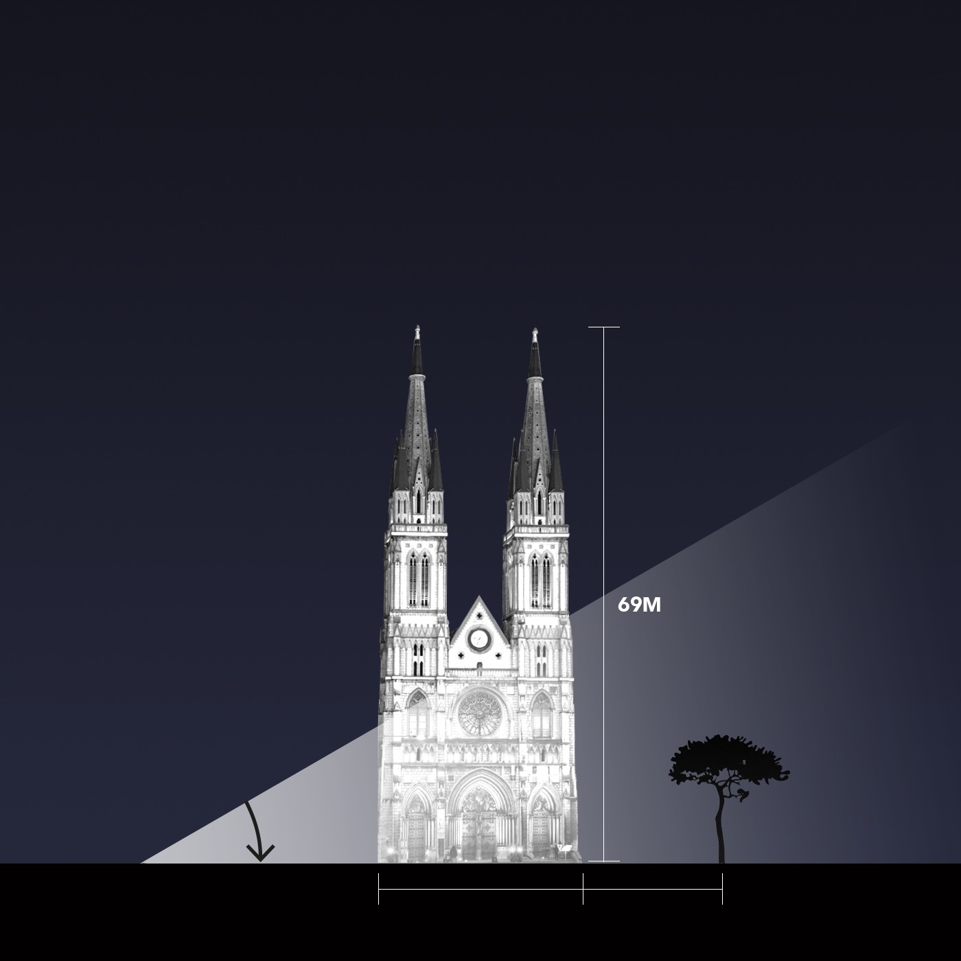 Framing ist eine spezielle Beleuchtungstechnik, die verwendet wird, um die Form eines Objekts oder architektonischer Details hervorzuheben. Diese Technik ist besonders nützlich, um Lichtverschmutzung zu vermeiden, indem sie eine gezielte Beleuchtung ermöglicht. Es gibt zwei Arten des Framings: Framing mit einem Messer-Zubehör für einfache Formen und Framing mit Gobo-Zuschneidung für komplexe Formen.